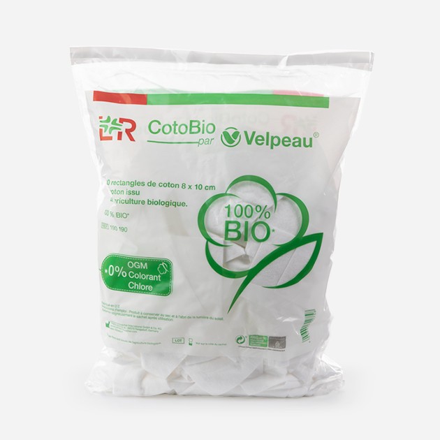 Sachet de 180 rectangles de coton BIO, 8x10cm pour soins et hygiène